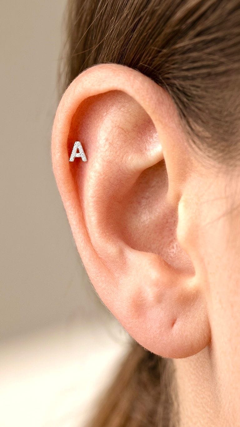 BEYAZ ALTIN A HARFİ PIRLANTA PİERCİNG