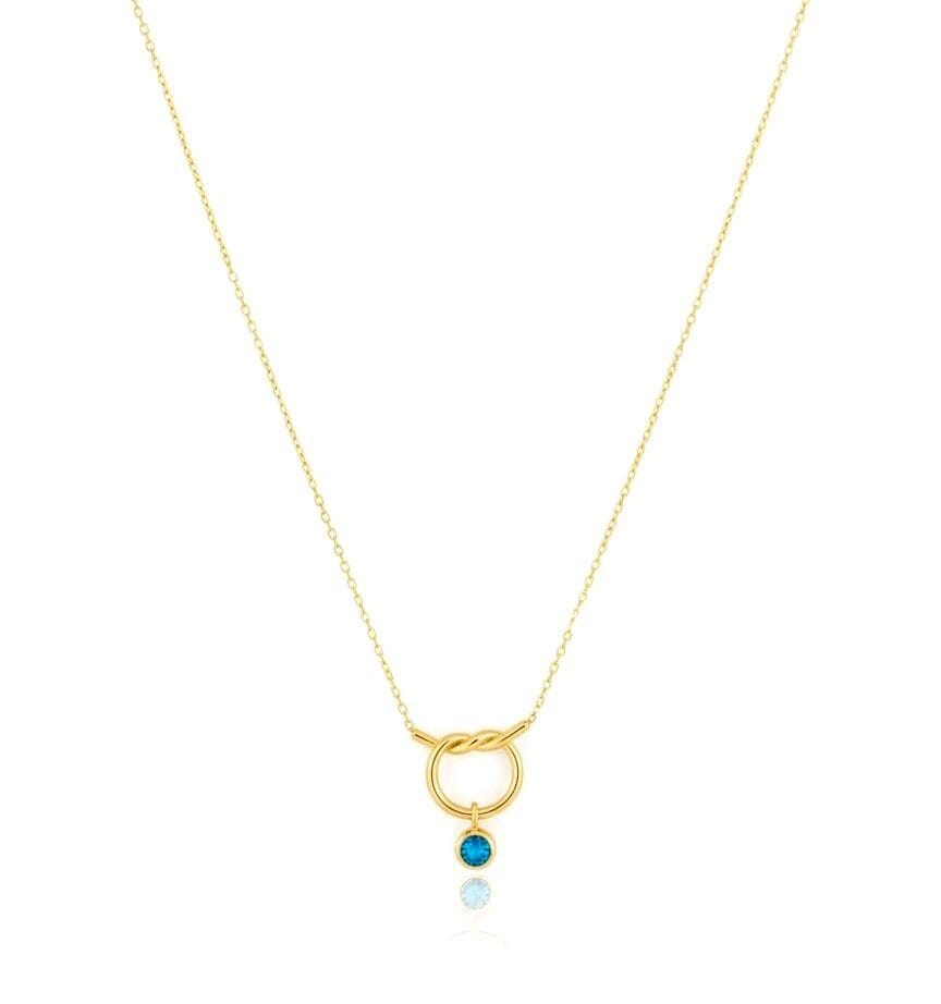14 Ayar Altın Mavi Taşlı Modern Düğüm Kolye
