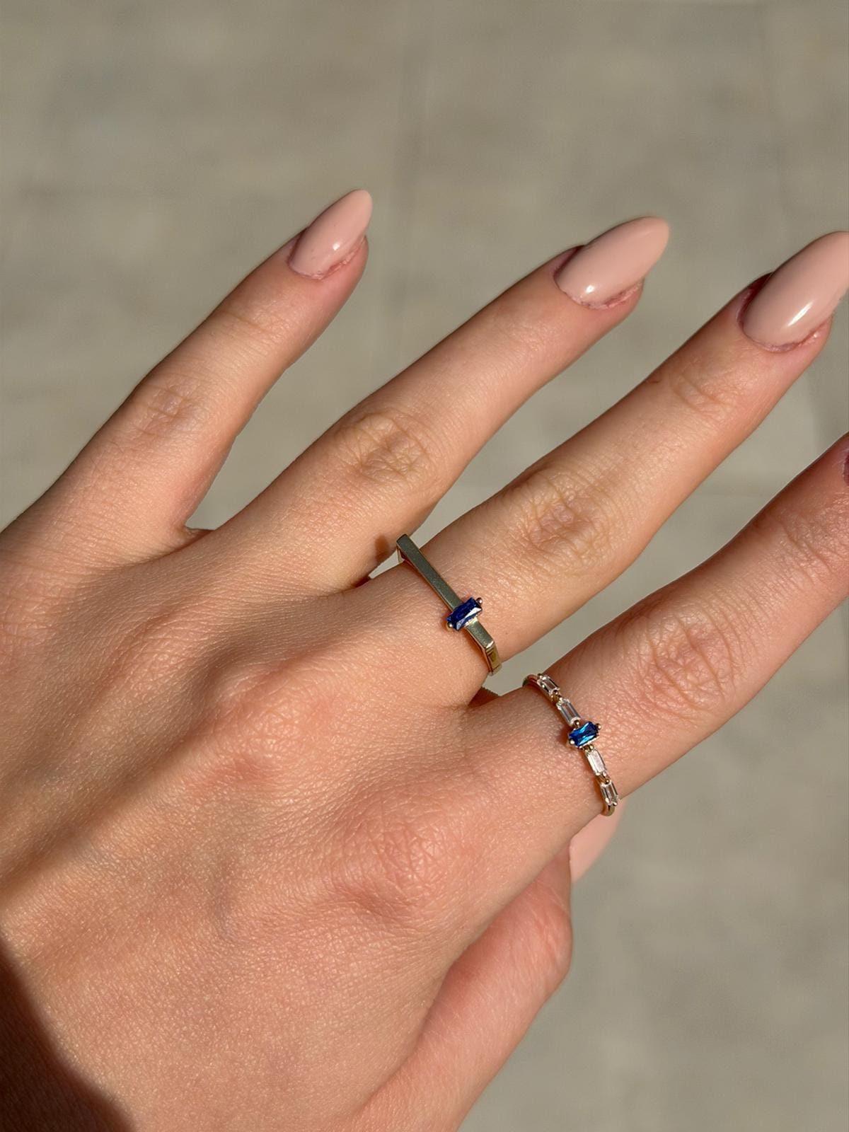 MAVİ TAŞLI BAGET ALTIN YÜZÜK