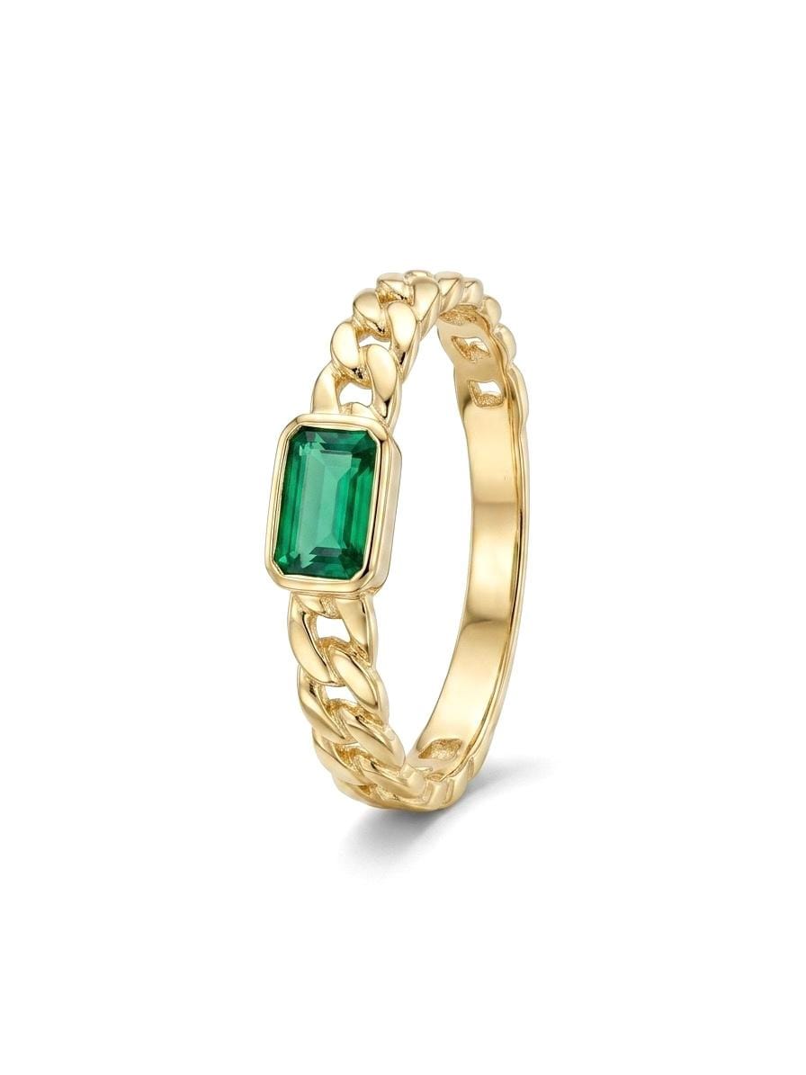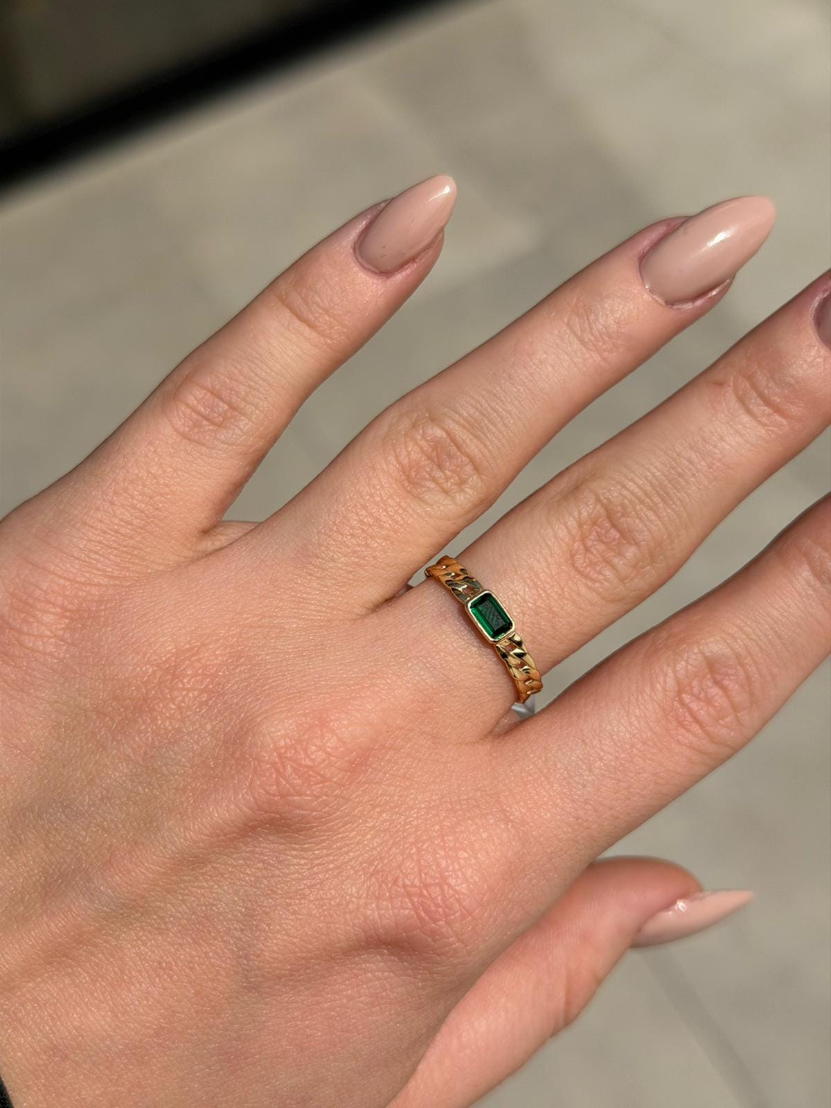 YEŞİL BAGET TAŞLI ZİNCİR YAPILI ALTIN YÜZÜK